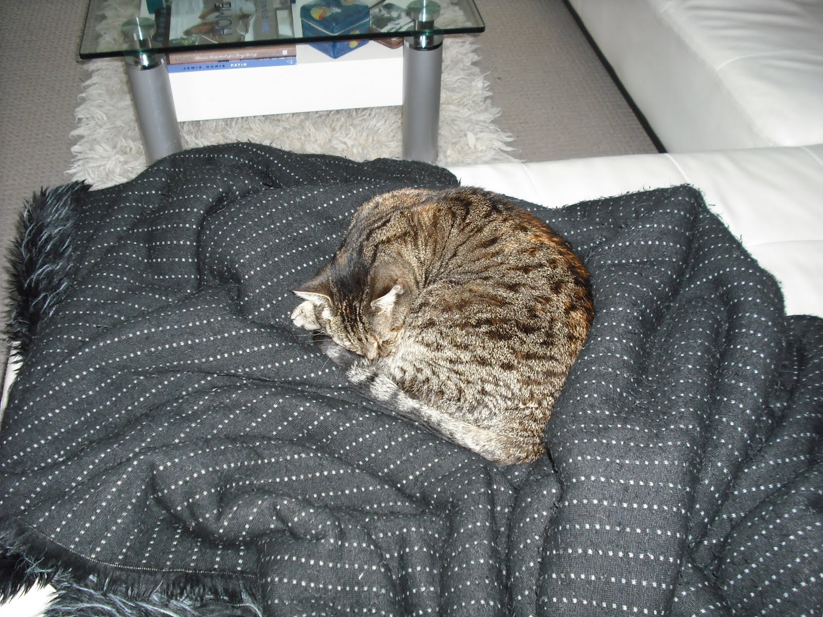 They say that cats spend 3/4 of their time sleeping. Pipi proves this to be true. She has many favourite places to steal a nap. Our easy chair is one of them.
